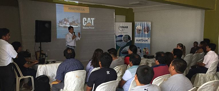 Durante la Feria de Armadores organizada para empresarios del sector pesquero, Ferreyros presentó sus productos y servicios a los asistentes, además de brindar una interesante charla sobre la nueva versión del motor marino CAT C18 Advance.